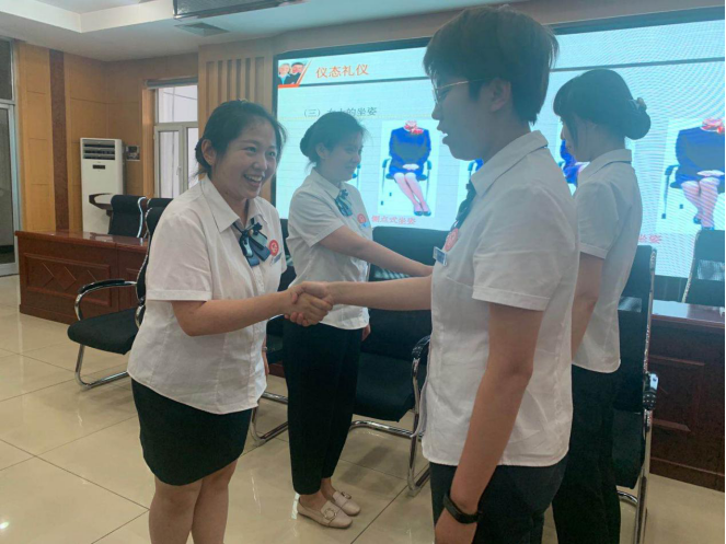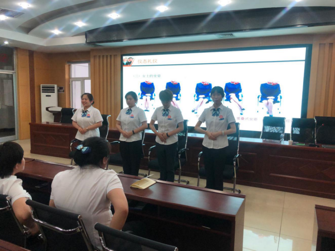 為進(jìn)一步強(qiáng)化職工服務(wù)意識(shí),優(yōu)化服務(wù)禮儀、服務(wù)質(zhì)量,8月19日供水公司人力資源部邀請(qǐng)高職學(xué)院專業(yè)禮儀培訓(xùn)老師王婷為營業(yè)窗口職工開展禮儀培訓(xùn)。