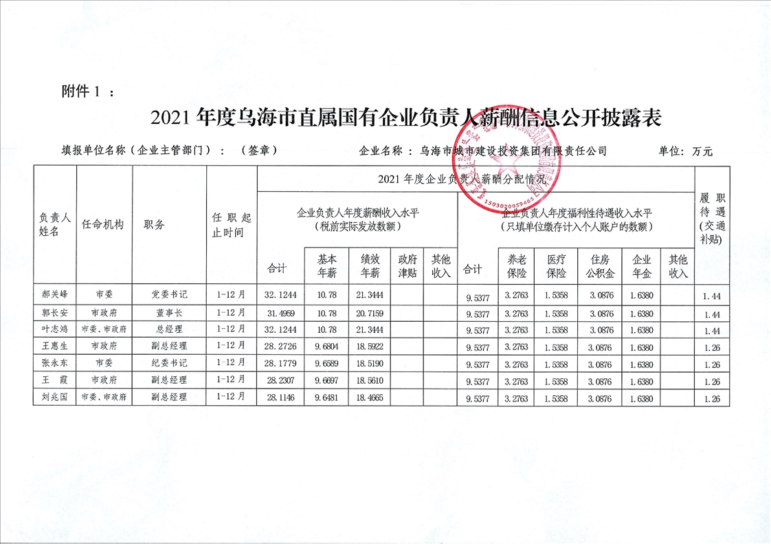 - 2022-09-022021年烏海市城市建設(shè)投資集團有限責任公司工資總額信息披露