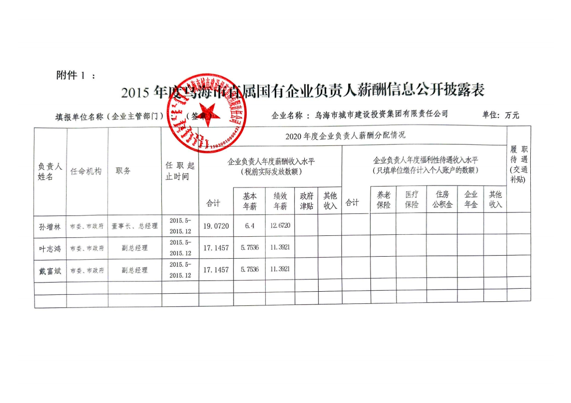 2015年度烏海市直屬國(guó)有企業(yè)負(fù)責(zé)人薪酬信息公開披露表
