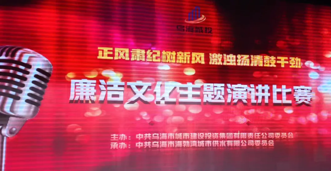 為深入貫徹落實習(xí)近平總書記關(guān)于加強新時代廉潔文化建設(shè)的部署要求,進一步增強全體黨員干部職工紀(jì)法意識,營造風(fēng)清氣正的廉潔氛圍,推動清廉國企建設(shè)走深走實,11月29日下午,由市城投集團公司黨委主辦,海勃灣城市供水公司黨委承辦的“正風(fēng)肅紀(jì)樹新風(fēng),激濁揚清鼓干勁”廉潔文化主題演講比賽在烏海市科技館二樓小禮堂舉行。