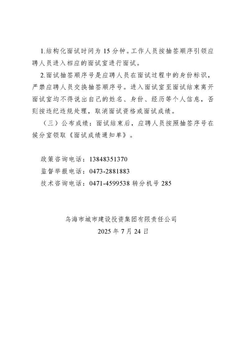 - 2025-07-27烏海市城市建設(shè)投資集團有限責(zé)任公司五虎山井田南部采空區(qū)災(zāi)害綜合治理項目公開招聘項目負(fù)責(zé)人考試面試成績查詢的通知